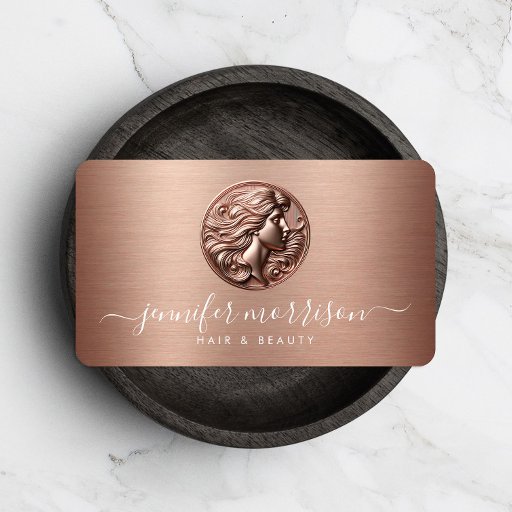 Chic Rose Gold Cameo Logo Beauty, Hair, Skincare Rack Card