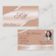Chic Rose Gold Coral Curved Lines Monogram Photo Business Card