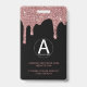 Girly Rose Gold Sparkle Glitter Drips Monogram Name Badge with fashion faux blush pink/rose gold glitter drips on a chic black background with your name, photo, and contact details. Add your business logo or other credentials on the back. Great for anyone who loves the luxury glam lifestyle. Perfect for your luxury esthetic! You're dripping in luxury - show it! Please contact us at cedarandstring@gmail.com if you need assistance with the design or matching products.