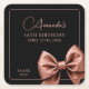Chic Rose Gold Glitter Bow Sweet 16 Birthday Square Paper Coaster