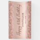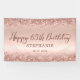 Elegant Modern Sparkle Rose gold glitter metallic Personalised Happy 65th (or ANY AGE) Birthday Party Banner. This Girly Adult feminine Birhday party decor featuring "Happy 65th Birthday" text in a stylish handwritten calligraphy script and custom name, date on blush pink or rose gold faux brushed metallic foil look background with loose glam glitter frame. Ideal for a feminine adult or girly milestone birthday celebration, this perfectly captures the essence of a modern rose gold or blush pink glitter sparkle girly birthday party. Perfect for a welcome banner or even a party decoration.