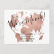 Chic rose gold world map moving announcement postcard
