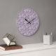 A chic Round Wall Clock, with a pattern of Lilies-of-the Valley in White outline on a Mauve background; from the Posh & Painterly 'For the Love of Lilies' collection.