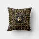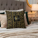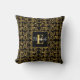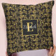 Chic Royal Black & Gold Floral Damask Custom Name Cushion