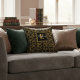 Captivate your guests with a touch of timeless luxury. This sophisticated throw pillow features an intricate gold floral damask pattern set against a deep, matte black background, creating a high-contrast look that exudes "Royal" elegance.
