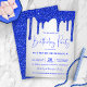 Luxury Elegant Royal Blue Glitter Drips Any Year Birthday Party Invitations featuring faux glitter dripping in deep, royal blue luxury on a classic metallic style background. You're dripping in luxury, so your party invitations cards should be, too! Easy to customise! Feel free to contact us at cedarandstring@gmail.com if you need assistance with the design or matching products.