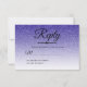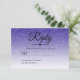 A chic, pretty royal blue glitter ombre Sweet 16 RSVP card with emerald green ombre pattern fading onto a white background. The text "Reply" in black is set in modern script. Perfect for a glamourous Sweet sixteen, perfect for her, the fashionista who loves modern pattern, sparkle, luxury and glam. Exclusively designed for you by Happy Dolphn Studio.