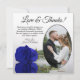 These beautiful wedding thank you cards are a wonderful way to show your appreciation to your friends and family for celebrating with you on your special day. They feature your wedding photo in an oval shaped frame with a single long stemmed royal blue or cobalt coloured rose lying on its side reflecting in water. The title reads "Love & Thanks" with room for a custom note and signature. Classy, romantic, and sophisticated, these cards are the perfect way to conclude your wedding celebration.