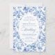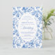 Make a refined first impression with this wedding invitation featuring classic French toile de jouy roses in elegant shades of navy blue, royal blue, dusty blue, and deep blue. Inspired by timeless European floral design, this invitation blends traditional sophistication with modern elegance, perfect for a classic, romantic, or formal wedding celebration.