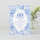 Chic Royal Blue Toile Roses 60th Birthday Invite