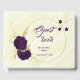 beautiful elegant royal purple flowers with some gold leaves geometric chic marble guest book.