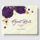 beautiful elegant royal purple flowers with some gold leaves chic marble guest book.