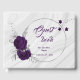 beautiful elegant royal purple flowers with some silver leaves geometric chic grey marble guest book.
