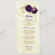 beautiful royal purple flowers and gold leaves elegant wedding menu.