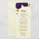 beautiful royal purple flowers and gold leaves elegant wedding menu.