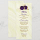 beautiful royal purple flowers and gold leaves elegant wedding menu.