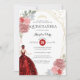 Chic Ruby Red Floral Geometric Photo Quinceañera Invitation