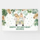 Safari themed welcome banner featuring watercolor tropical green and gold greenery and a group of cute jungle animals. Customize the wording to suit your occasion, e.g. baby shower, baptism, birthday, naming day, christening, etc