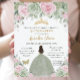 Chic Sage Green Baby Pink Floral Gold Quinceañera Invitation