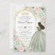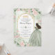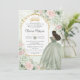 Chic Sage Green Blush Floral Princess Quinceañera Invitation