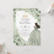 Chic Sage Green Floral Brown Princess Quinceañera Invitation