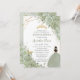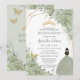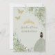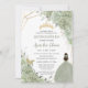 Chic Sage Green Floral Princess Gold Quinceañera Invitation