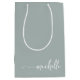 Chic Sage Green Monogram Name Script Medium Gift Bag
