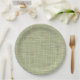Chic Sage Herb Green Faux Jute Fabric Pattern Paper Plate