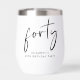 Elegant wine tumbler for your 40th birthday party featuring "forty" showcased in a chic script and your name in simple, modern lettering.