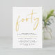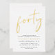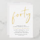 Elevate your 40th birthday party with this chic invitation featuring "forty" in a stylish script and your name in elegant serif typography, rendered in your choice of genuine gold, silver foil or rose gold foil, and the party details in simple, modern lettering.