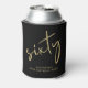 Fun black can coolers for her 60th birthday party featuring "sixty" in a chic gold script and her name in modern lettering.
