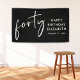 Chic black 40th birthday party banner and welcome sign featuring "forty" showcased in a stylish white script and your name and the date in modern white lettering.
