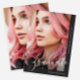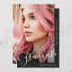 This beautiful graduation announcement features pretty white graduate script on a modern black background, and two photos.