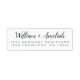 Simple, modern and chic wedding return address label with your names in off-black elegant handwritten script calligraphy on a white background. Simply add your names and address. Exclusively designed for you by Happy Dolphin Studio. If you need any help or matching products please contact us at happydolphinstudio@outlook.com. We're happy to help you make your wedding the most beautiful day!