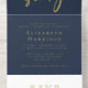 Elegant dark blue 60th birthday party all-in-one invitation that features "sixty" in a large chic script, your name and "RSVP" in classic serif typography and the party details in simple lettering, all rendered in your choice of genuine gold, silver or rose gold foil. A white tear-away RSVP postcard provides a convenient envelope-free response option for your guests.