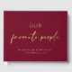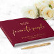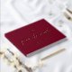 Chic burgundy red wedding guest book featuring your choice of real gold, silver or rose gold foil, "Our Favourite People" in simple typography and a modern script, your names in classic elegant serif typography and your wedding date. Personalise your title on the spine and add a favourite photo on the back.