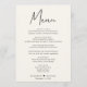 Chic light cream wedding reception dinner menu with "Menu" in a stylish modern script, your menu in simple typography, your names joined together by a heart and your reception date.