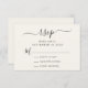Chic light cream wedding RSVP card that features "rsvp" in a stylish script with swashes, simple and elegant typography and your names joined together by a heart on the back.