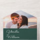 All in one wedding invitation featuring your photo, monogram initials and elegant modern minimalist typography on an emerald green background. The invitation includes a perforated RSVP card that’s can be individually addressed or left blank for you to handwrite your guest's address details. Designed by Thisisnotme©