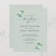 Elegant, modern and simple wedding invitation with off-black chic handwritten script calligraphy and a stylish touch of green eucalyptus foliage on a milky green background. Simply add your wedding details. Exclusively designed for you by Happy Dolphin Studio. If you have any questions, please contact us at happydolphinstudio@outlook.com. We're happy to help you make your wedding the most beautiful day!