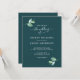 Elegant, modern and simple wedding invitation with off-black chic handwritten script calligraphy and a stylish touch of green eucalyptus foliage on a deep teal background. Simply add your wedding details. Exclusively designed for you by Happy Dolphin Studio. If you have any questions, please contact us at happydolphinstudio@outlook.com. We're happy to help you make your wedding the most beautiful day!