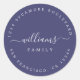 Chic, modern and simple family return address classic round sticker with your family name in white elegant script on a navy blue background. Simply add your name and address. Exclusively designed for you by Happy Dolphin Studio. If you need any help or matching products please contact us at happydolphinstudio@outlook.com. We're happy to design the most beautiful personalised stationery for your family!