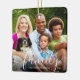 Modern, chic white script title of FAMILY as an overlay on your photo. Add your family name and year to create a beautiful keepsake ornament. The design is duplicated on the back side. PHOTO TIP: For fastest/best results, choose a photo with the subject in the middle and/or pre-crop it to a square shape BEFORE uploading and it will fill the photo space perfectly. Contact the designer if you'd like this design modified or on another product.