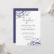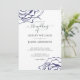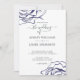 Chic Script Floral Outline Navy Blue Rose Wedding Invitation