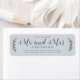 Chic, modern and simple wedding return address label with the text the future Mr and Mrs in off-black elegant script calligraphy on a pastel blue background with a stylish touch of rustic foliage. Simply add your name and address. Exclusively designed for you by Happy Dolphin Studio. If you need any help or matching products please contact us through our store chat. We're happy to help you make your wedding the most beautiful day!