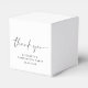 Chic minimal graduation party favour box featuring "thank you" in a modern script and the grad's name and party date in simple typography.
