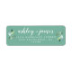 Chic, modern and simple wedding return address label with your names in white elegant handwritten script calligraphy with a stylish touch of green foliage on a dusty jade green background. Simply add your names and address. Exclusively designed for you by Happy Dolphin Studio. If you need any help or matching products, please contact us at happydolphinstudio@outlook.com. We're happy to help you make your wedding the most beautiful day!