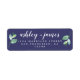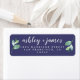 Chic, modern and simple wedding return address label with your names in white elegant handwritten script calligraphy with a stylish touch of green foliage on a navy blue background. Simply add your names and address. Exclusively designed for you by Happy Dolphin Studio. If you need any help or matching products, please contact us at happydolphinstudio@outlook.com. We're happy to help you make your wedding the most beautiful day!