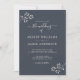 Elegant, modern and simple wedding invitation with ivory chic script calligraphy and a stylish touch of ivory blossom foliage on a dark blue background. Simply add your wedding details. Exclusively designed for you by Happy Dolphin Studio. If you have any questions, please contact us through our store chat. We're happy to help you make your wedding the most beautiful day!
