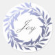 Chic Script Joy Blue Foil Wreath Christmas Classic Round Sticker